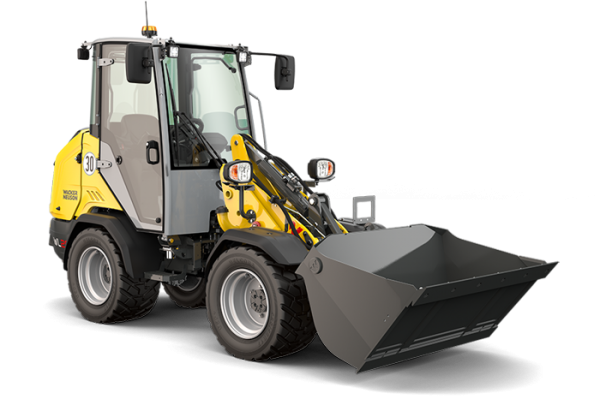 Wacker Neuson kompaktlastare WL28 med tillbehören: Skopa,Hydraliskagafflar samt Fjärsåsvikplog
